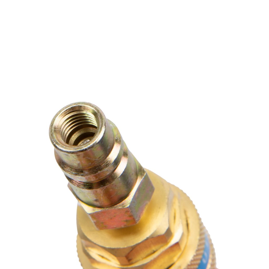 Denna AC-adapter gör det möjligt att använda R134a-serviceutrustning på luftkonditioneringssystem som är fyllda med R1234YF-kylmedel. Tack vare den raka lågtryckskopplingen med ventil är adaptern enkel att ansluta och ger en säker, tät förbindelse.