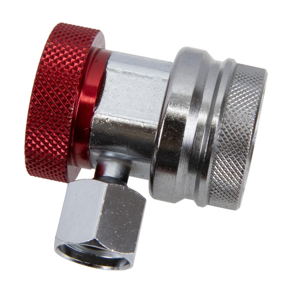 Kopplingen är särskilt lämplig för högtrycksanslutning på R134a-system och erbjuder enkel hantering för verkstäder och biltekniker.