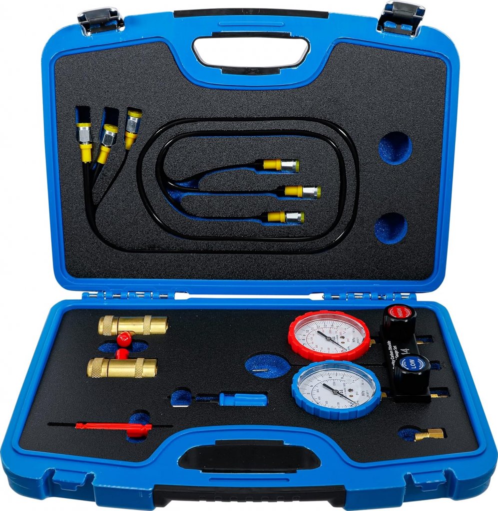 Denna tryckarmatur för köldmedium R744 är utformad för exakt mätning av högt och lågt tryck på luftkonditioneringssystem med koldioxid (CO₂). Den levereras komplett med hög- och lågtrycksslang samt anslutningsslang till serviceanordning, vilket gör den direkt redo för användning.
