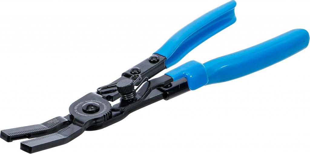 Denna Fjäderband-Slangklämmor-Tång på 260 mm är ett högkvalitativt verktyg för snabb och säker montering och demontering av platsbesparande slangklämmor, inklusive den moderna VAG-typen på bränsleledningar. Tången är utrustad med en spärrmekanism som håller klämman i öppet läge, vilket förenklar arbetet i trånga utrymmen och minskar belastningen vid upprepat arbete.