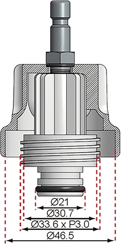 Adaptern har en utvändig gänga på 33 mm, vilket ger en säker och exakt passform mot expansionslocket.