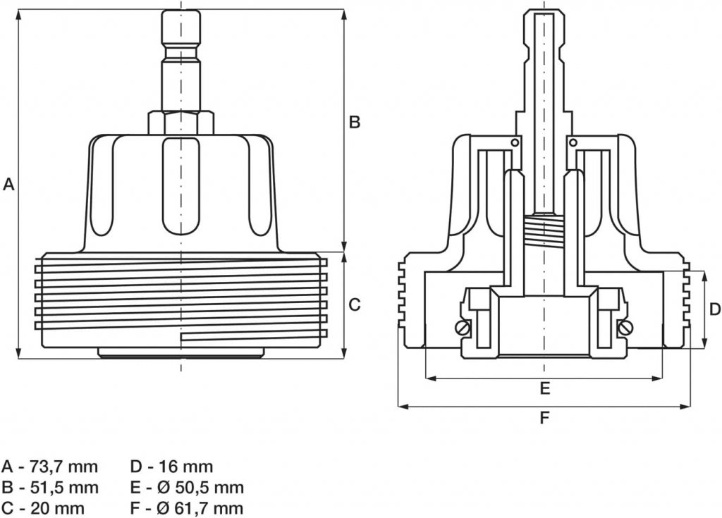Adaptern har en utvändig gänga på M62 x 3 mm som säkerställer en tät och pålitlig anslutning vid testning av kylsystemet. Perfekt för professionella verkstäder och avancerade hobbyanvändare som vill säkerställa kylsystemets integritet.