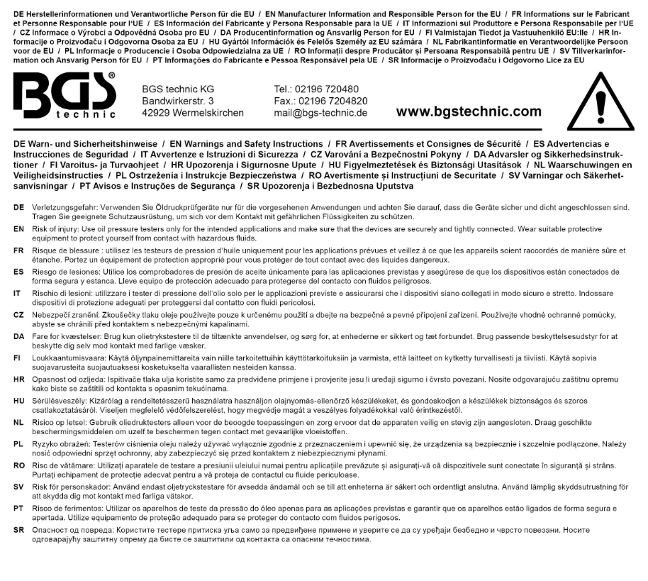 Detta testinstrument ger en tydlig och noggrann mätning av avgastrycket i avgassystemet, vilket gör det möjligt att upptäcka blockeringar eller förträngningar i systemet. För att genomföra mätningen kopplas tryckslangen enkelt via en gängadapter till lambda-sondens gänghål eller till EGR-ventilens adapter. Avgastrycket visas på en färgkodad skala i både kg/cm² och PSI för enkel avläsning.