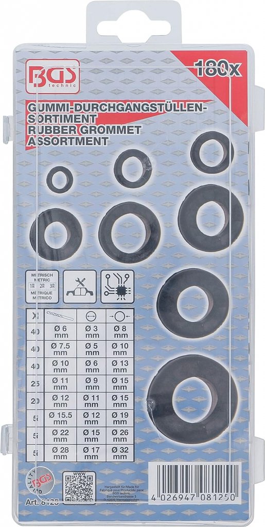 Denna metriska sats med 180 kabelgenomföringar är idealisk för att skydda kablar vid genomföring genom hål i plåt, plast eller andra hårda material. Genomföringarna förhindrar skador på kabelisoleringen och ger ett rent, professionellt resultat vid installationer i fordon, elskåp och maskiner.