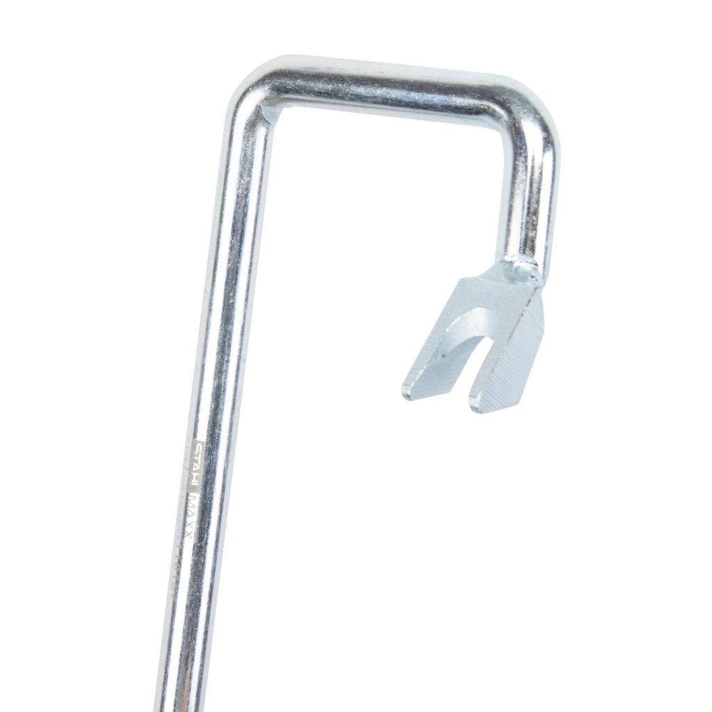 Detta upplåsningsverktyg, motsvarande VAG T10006A, är ett specialverktyg för att frikoppla bromspedalen från bromsförstärkaren på äldre Audi- och Volkswagenmodeller. Verktyget underlättar service och reparation av bromssystemet utan att skada komponenterna, vilket gör arbetet både snabbare och mer kontrollerat.
