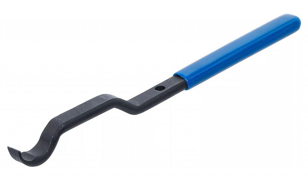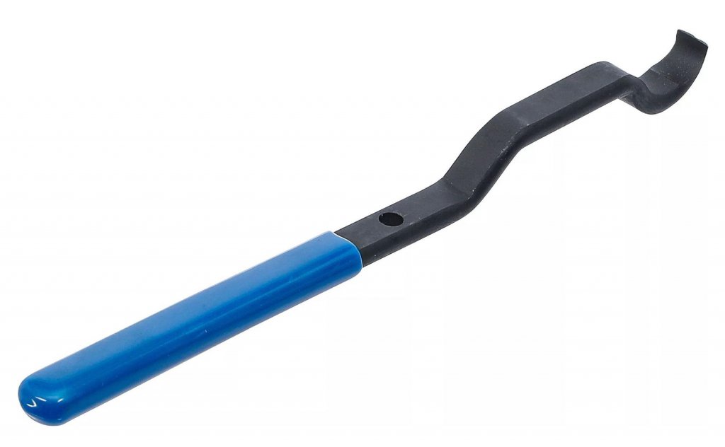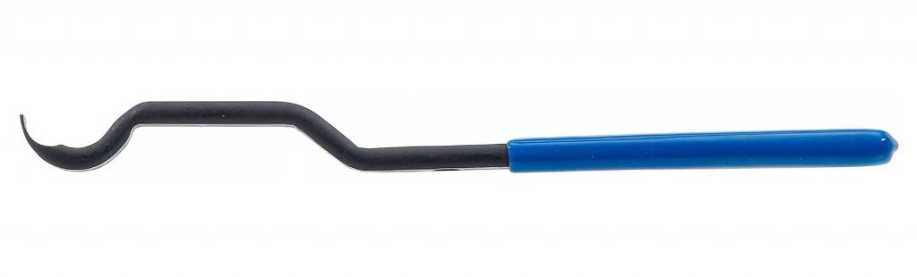 Denna monteringsspak för hjullager-låsring är ett specialverktyg som förenklar demontering och montering av låsringar på hjullager. Den speciellt formade spetsen hakar enkelt fast i låsringen, vilket möjliggör säker och effektiv hantering utan skador på lager eller ring.