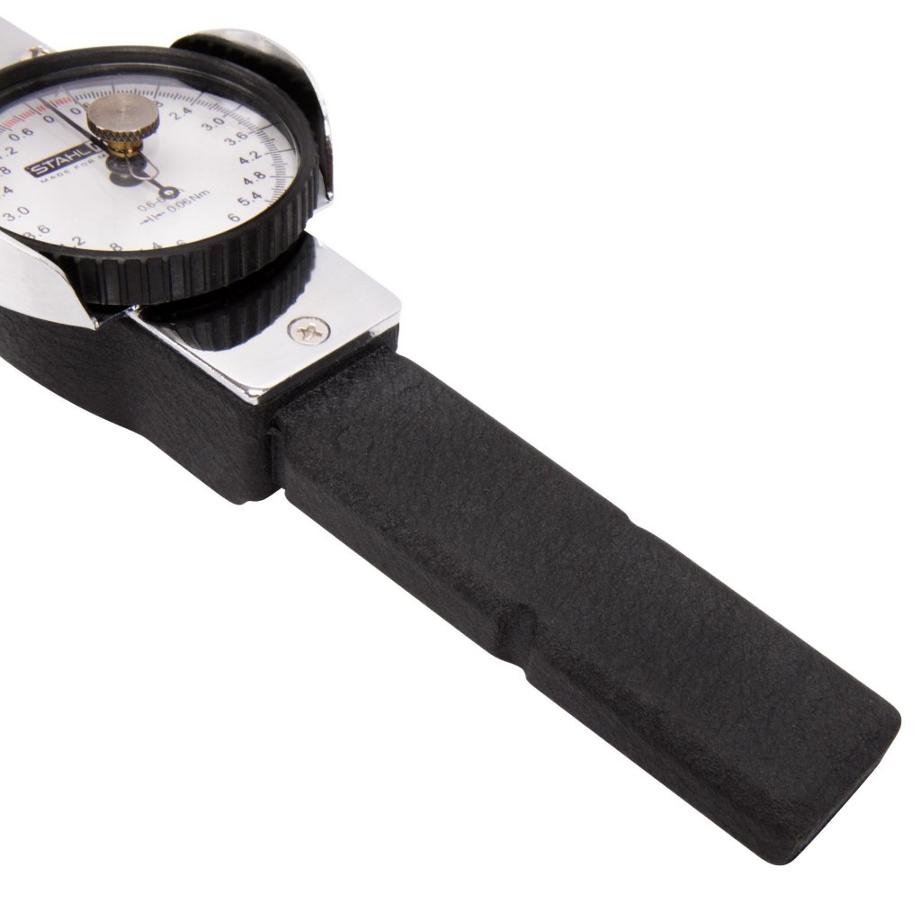 Friktionsmätaren är utrustad med en stor, rund skala som gör den enkel att avläsa. Även de minsta friktionsvärdena, så låga som 0,06 Nm/600 Ncm, kan enkelt detekteras. Den smarta maxvärdesvisningen gör att du kan läsa av det högsta uppmätta värdet, även utan rotation eller vridmoment. Denna funktion underlättar för exakta mätningar och gör det möjligt att följa upp på högsta uppnådda friktionsnivå. Mätaren kan användas för att noggrant justera vänster och höger roterande axlar eller skruvar, vilket ger ett precist mått på friktionskoefficienten för lager och andra komponenter.