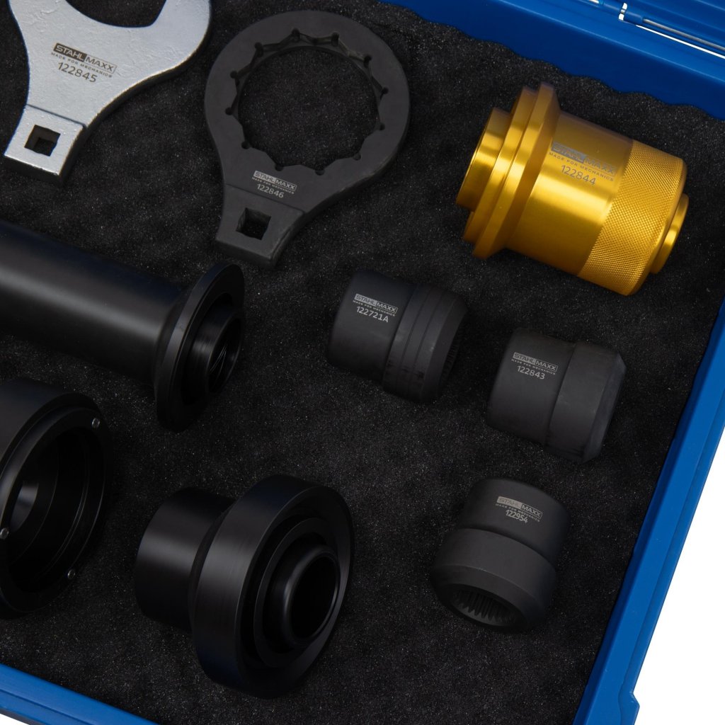 Specialverktygssats framtagen för professionellt byte av axeltätningar på kardanaxel, ingående axel, drivaxel och utgående axlar på växellådor och differentialer på en rad BMW-modeller. Denna sats möjliggör korrekt arbete enligt BMW:s reparationsinstruktioner och minskar risken för kostsamma följdskador.