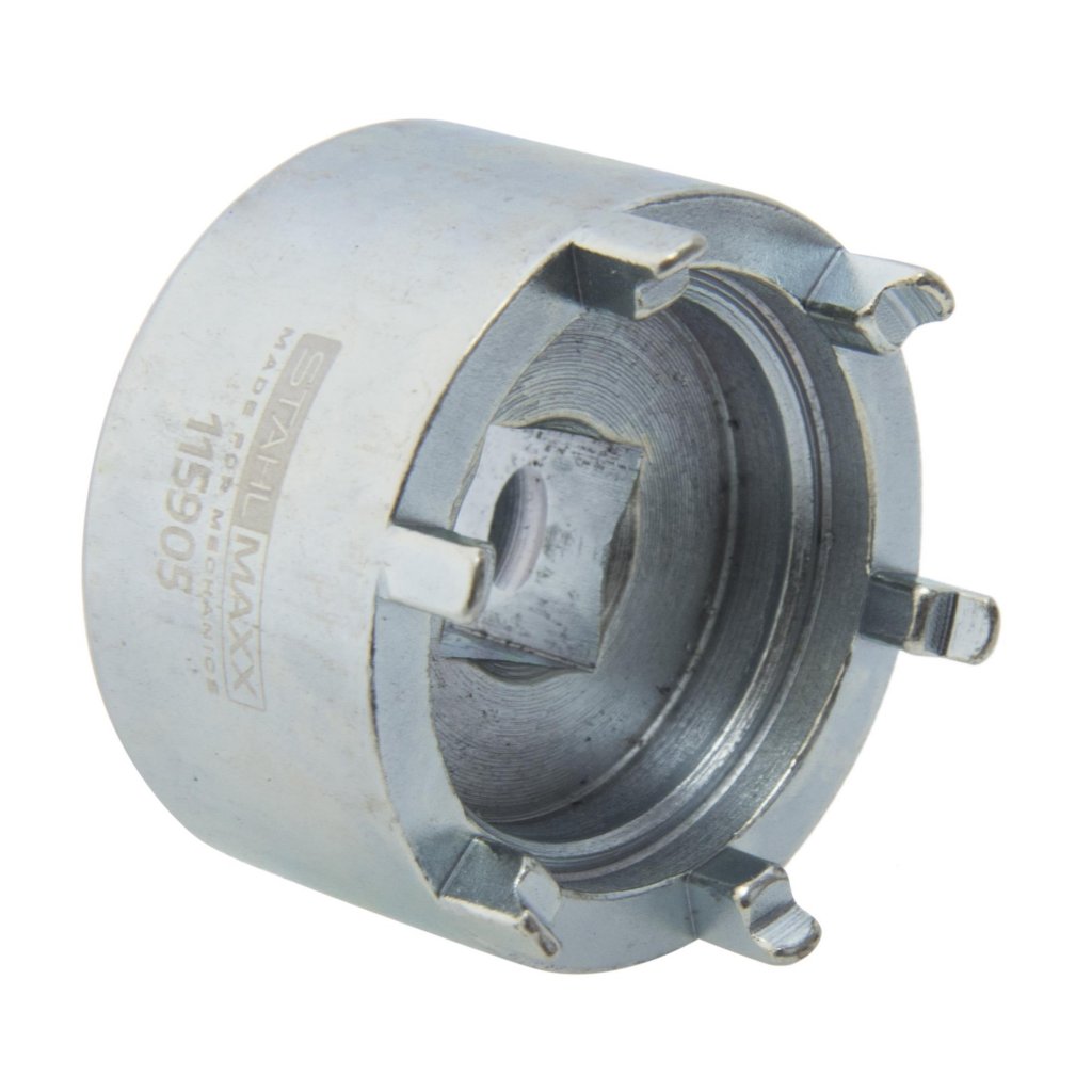 Specialanpassad hylsnyckel för service och underhåll av den 7-växlade dubbelkopplingsväxellådan 0B5 (s-tronic). Denna tapphylsa används specifikt för att lossa kontaktanslutningen på sensormodulen i växellådan, vilket gör den oumbärlig vid reparationer och komponentbyten.