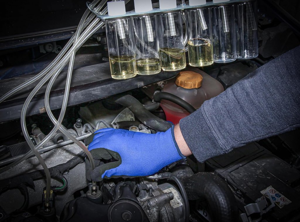 Testningen kan utföras med antingen plastkolvar för snabb visuell kontroll eller mätbehållare för mer exakt avläsning. Kitet är anpassat för motorer med upp till 6 injektorer och täcker flera av de vanligaste injektortillverkarna, vilket gör det idealiskt för både professionella verkstäder och avancerade diagnosarbeten.