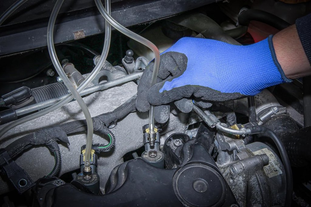 Koppla bort returledningen från injektorn