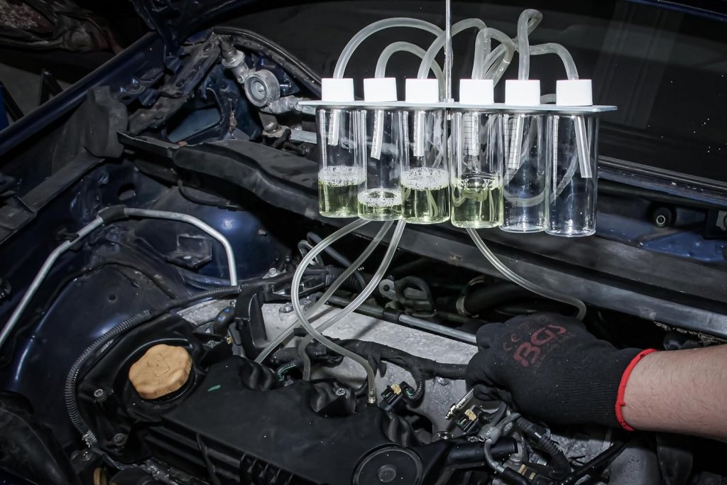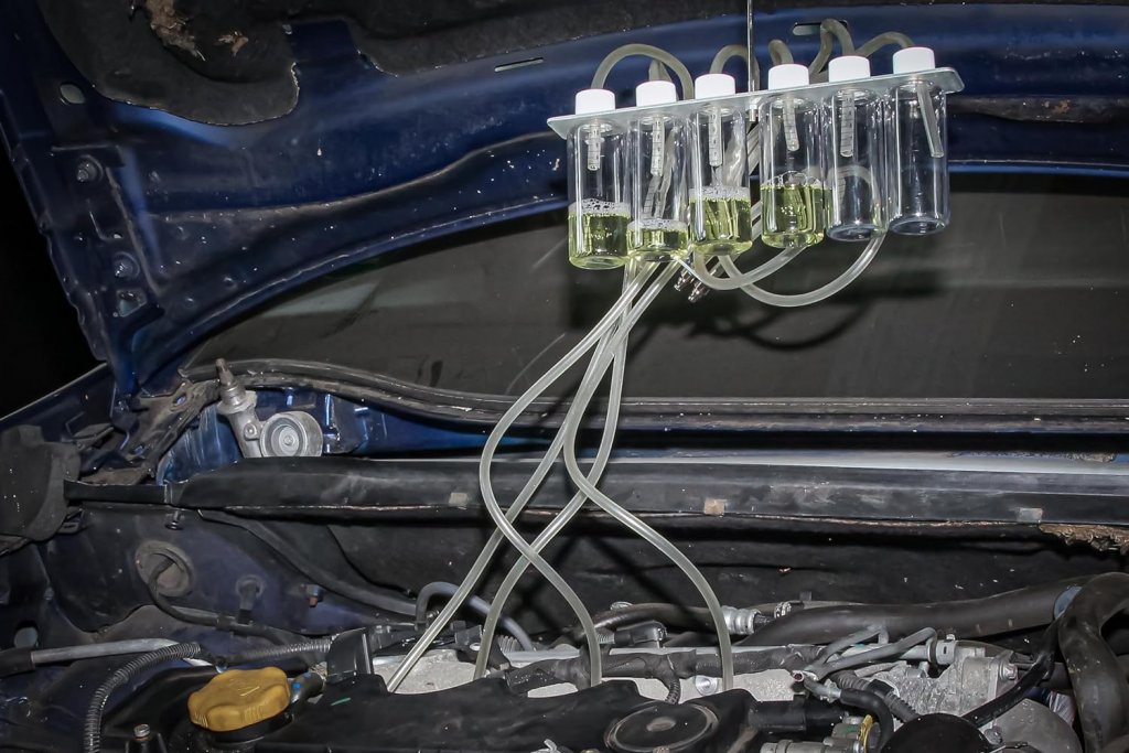- Jämför vätskenivåerna – en högre nivå i en av mätarna indikerar en defekt injektor.