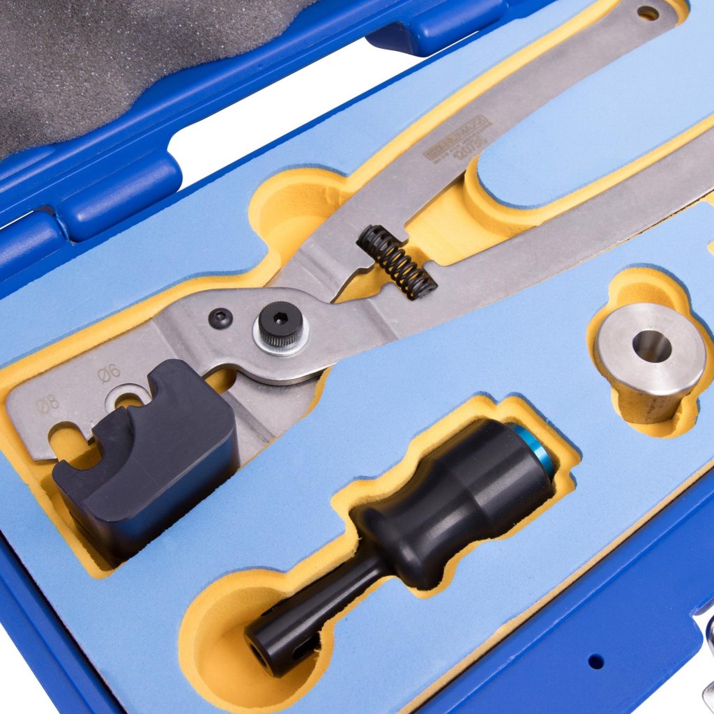 Verktygssats för att ta bort, installera och komprimera bränsleinjektorns förbränningskammares tätning på generation 2 BMW B3x, B4x, B5x-motorer.