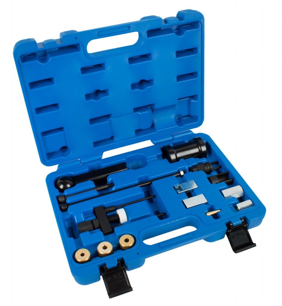 Professionellt specialverktyg för säker och effektiv demontering av injektorer från VAG-fordon. Passar för bensindirektinsprutade motorer samt motorer med enhetsinsprutare (Pumpe-Duese) som FSI, SDI, TDI och Common Rail. Ett komplett verktygskit som ersätter flera OEM-verktyg och förenklar arbetet i både verkstad och hobbygarage.