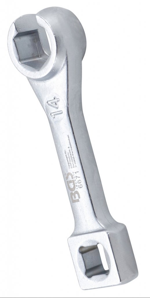 Öppen Ringnyckel med förstärkning för att lossa och dra åt bränsleledningen på bränslefilter på Toyota och Honda.