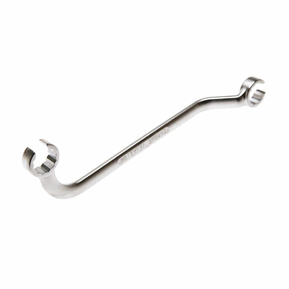 En högkvalitativ öppen dubbel-ringnyckel som är särskilt utformad för arbete på dieselinsprutningsrör. Tack vare sin böjda och vinklade design når du enkelt svåråtkomliga områden i motorrummet, vilket gör den idealisk för de flesta dieselmotorer. Verktyget är tillverkat av slitstarkt krom-vanadiumstål med en matt förkromad yta för bästa hållbarhet och korrosionsskydd. Perfekt för professionella verkstäder och entusiastmekaniker.