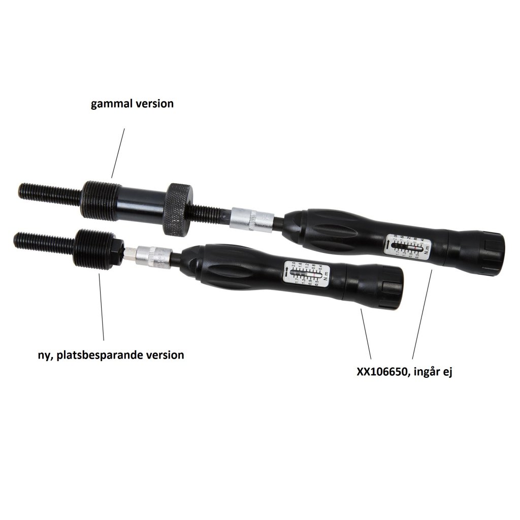 Med detta nydesignade specialverktyg för kamkedjans förspänning är det nu lättare att applicera det föreskrivna vridmomentet på 0,6 Nm med handmomentnyckeln 106650 när den är installerad.
