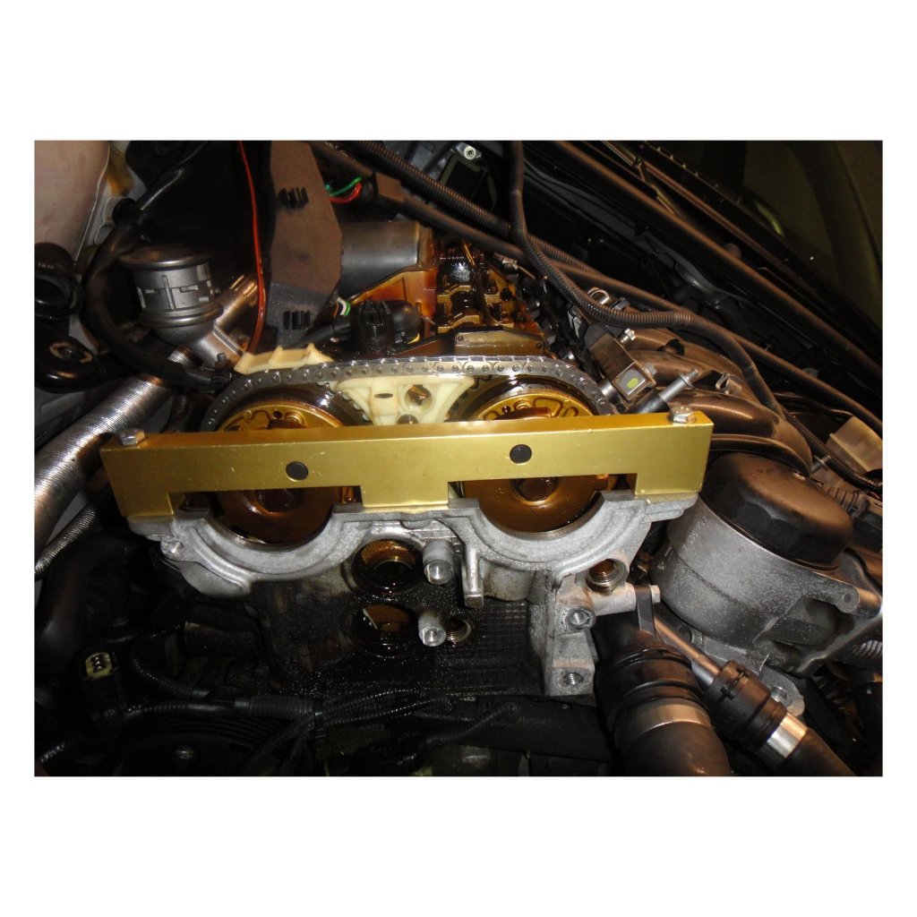 Motorinställningssats för BMW 1,8 och 2,0 bensinmotorer med 4 cylindrar och dubbla kamaxlar. Verktygssatsen krävs för inställnings och låsning av motorn såsom montering och demontering av kamaxlarna.