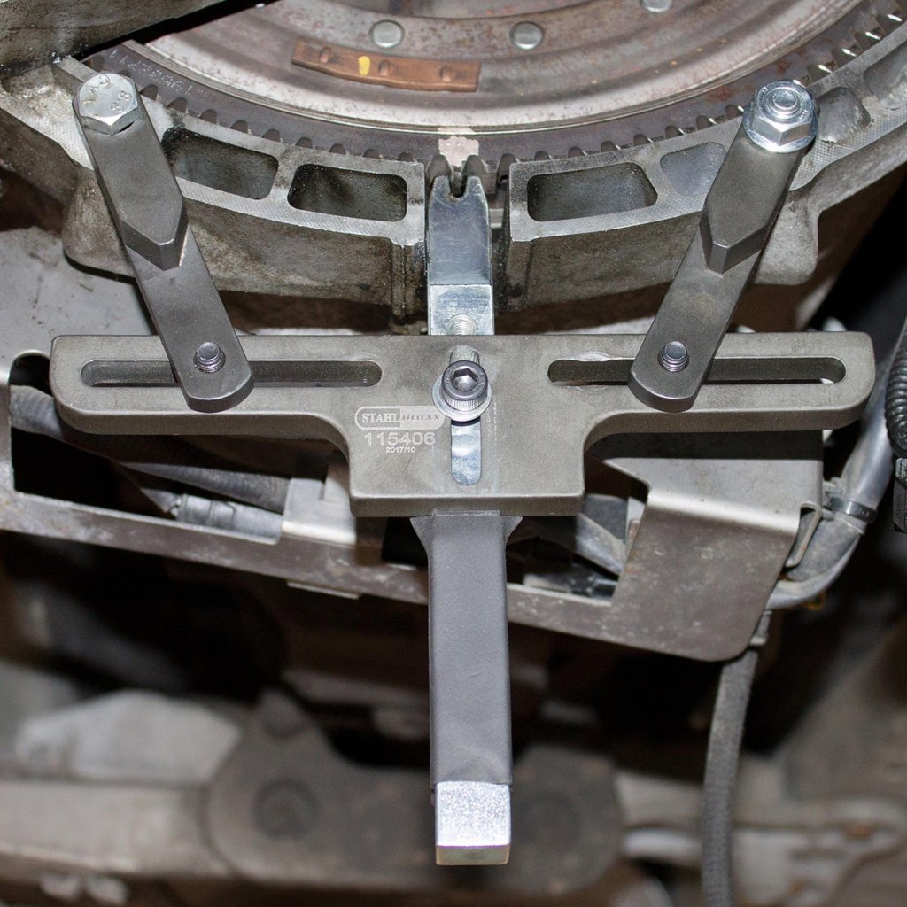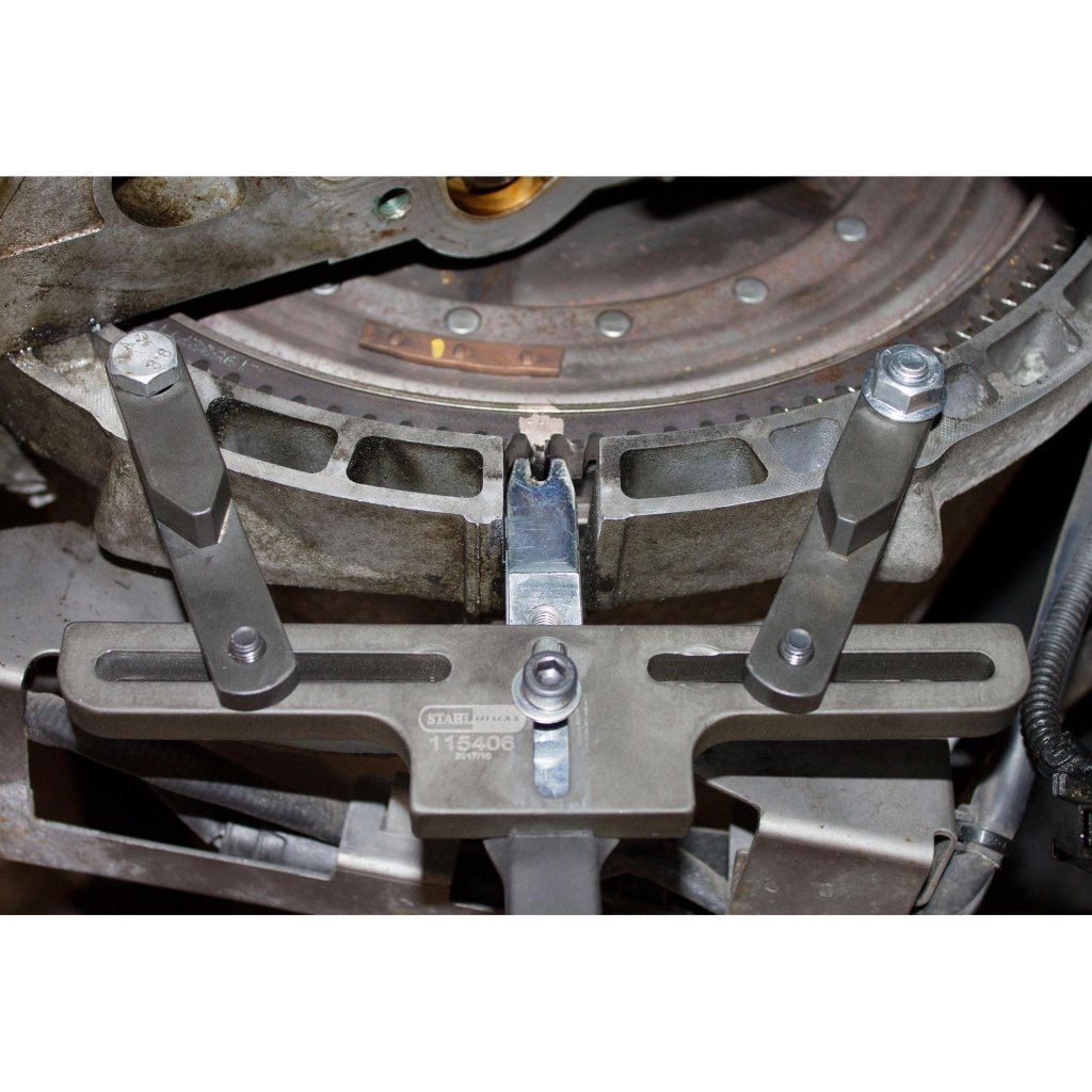 Detta specialverktyg, för att blockera vevaxeln i många BMW motorserier, används t.ex. används vid byte av vibrationsdämpare, byte av kamkedja eller byte av vevaxeltätning för att kunna bibehålla de ibland mycket höga vridmomenten.