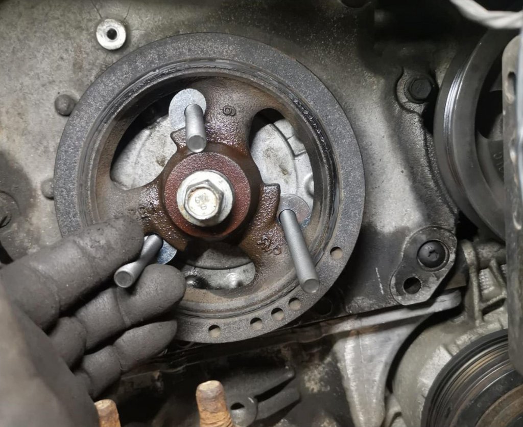 Tryckstiftet hindrar avdragaren från att skada vevaxelns nos.