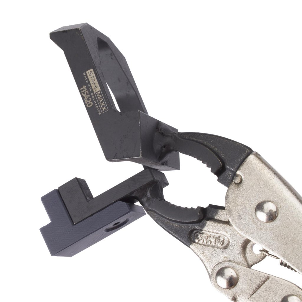 Professionellt fixeringsverktyg för BMW, MINI och PSA-fordon med variabel ventilstyrning (VVT/VTI). Verktyget används för exakt fixering och korrekt inriktning av glidblocken på excenteraxeln vid service- och reparationsarbeten på motorns ventilstyrning.