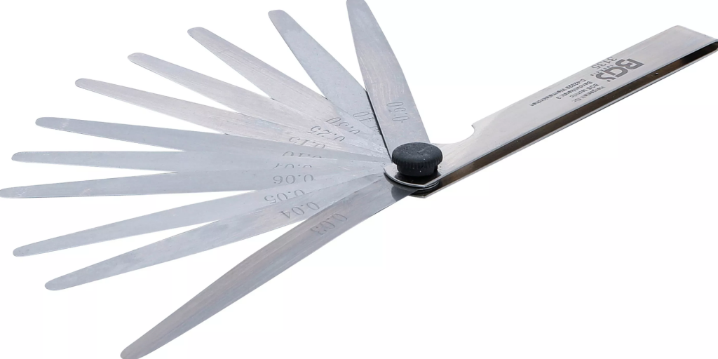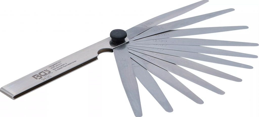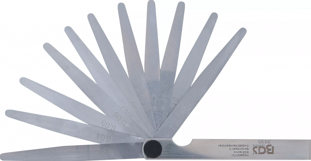 Bladmåttet omfattar 11 noggrant graderade blad med tjocklekar: 0,03 – 0,04 – 0,05 – 0,06 – 0,07 – 0,10 – 0,15 – 0,25 – 0,30 – 0,40 – 0,50 mm. Detta ger flexibilitet för både ultrakänslig mätning av smala spalter och mer grova justeringar.