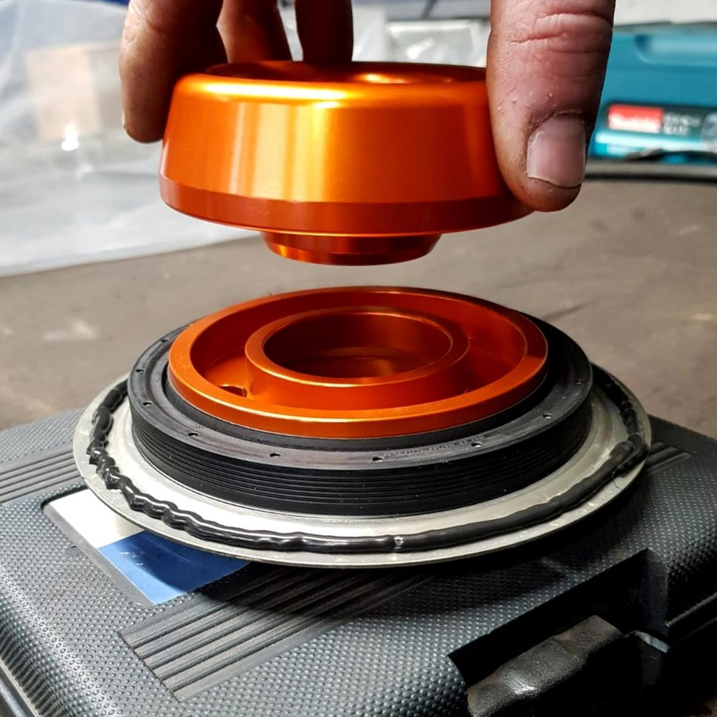 Simmerring monteringsverktyg för säker och skadefri montering av axeltätningen på vevaxeln (växellådssidan).