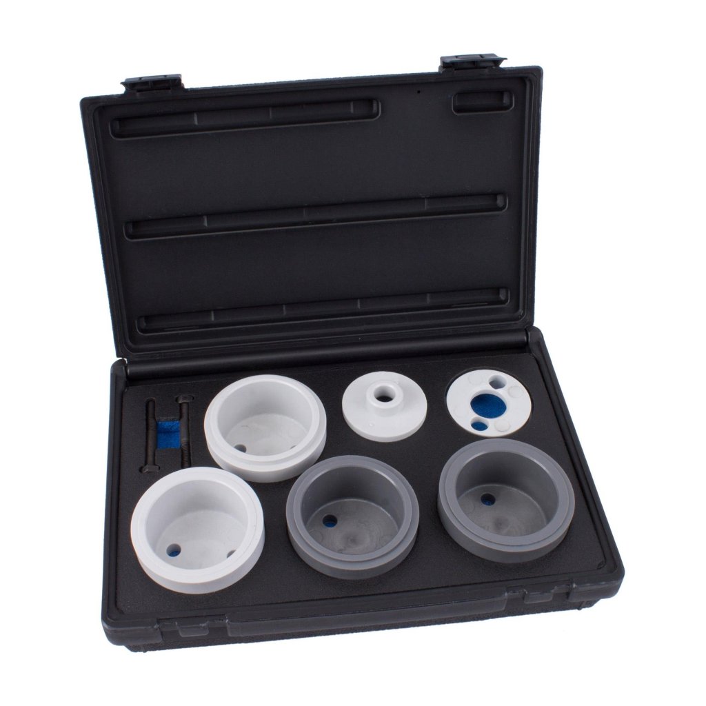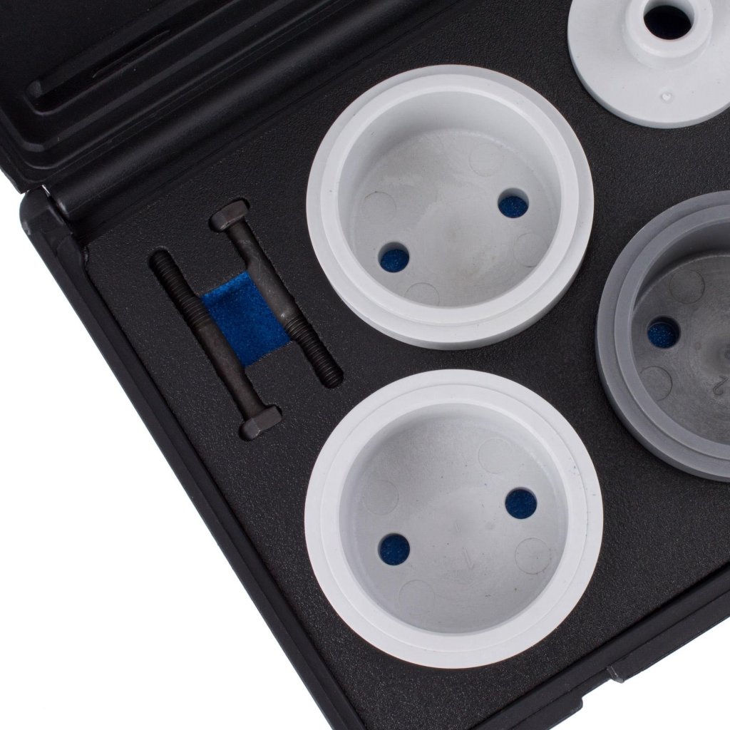 Axeltätningsmonteringsverktyg för användning på 6- och 8-cylindriga motorer från VAG-gruppen. För att byta ut vevaxelns oljetätning på remskivans sida.
