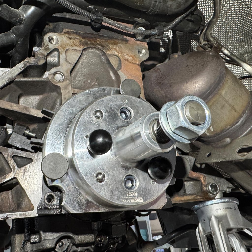 - För 6-håls svänghjulsmontering på 2,0L TDI-motorer, t.ex. CRBC, är detta verktyg lämpligt; för 8-håls svänghjulsmontering används Art-Nr. XX115502.