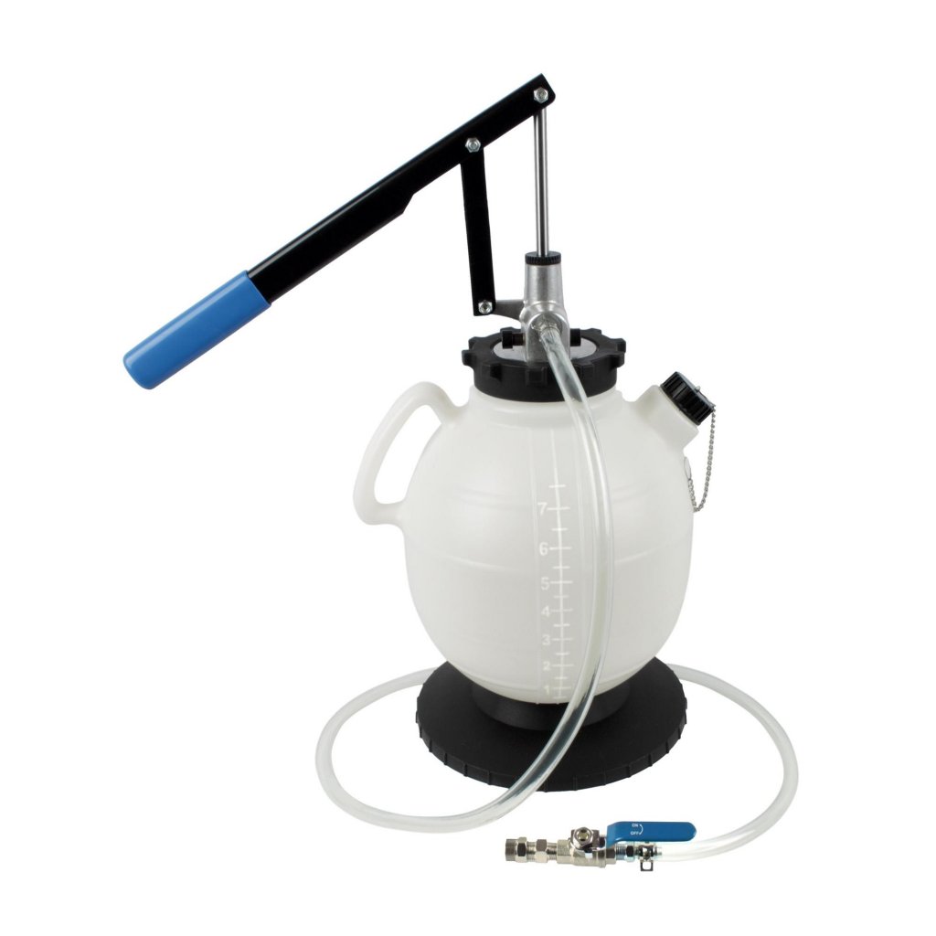 Oljepåfyllaren med 19 adapter är det ultimata verktyget för effektiv påfyllning av växellådor och differentialer. Den är designad för att hantera oljor upp till SAE 140-viskositet och gör det enkelt att fylla på olika transmissioner och växellådor. En returventil ser till att överflödig växellådsolja återförs till behållaren, vilket förhindrar spill och gör påfyllningen ren och effektiv. Den stora 7,5 liters behållaren med innehållsskala och den 160 cm långa slangen gör arbetet både smidigt och snabbt.