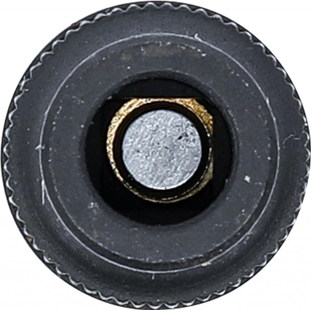 Denna magnetiska gängtappshållare är ett kompakt och effektivt verktyg för precisionsarbete med gängtappar. Tack vare den integrerade magneten hålls gängtappen säkert på plats, vilket gör det lättare att arbeta i trånga utrymmen där traditionella svängjärn inte fungerar.