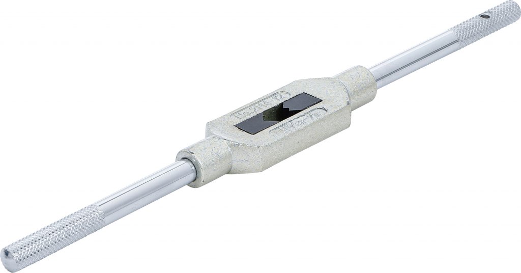 Detta svängjärn med avtagbara stålhandtag är ett pålitligt och robust verktyg för manuell gängning av invändiga gängor. Konstruktionen är utformad för att ge maximal kontroll och precision vid arbete med gängtappar i olika storlekar.