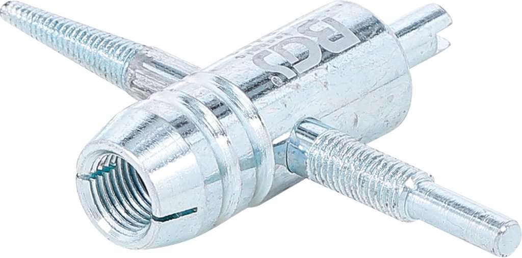 Gängrenoveringstapp för däckventiler är ett praktiskt multifunktionsverktyg för professionell däckservice och underhåll. Verktyget är utformat för att både demontera och montera däckventiler samt för att rensa och återställa skadade eller smutsiga ventilgängor.