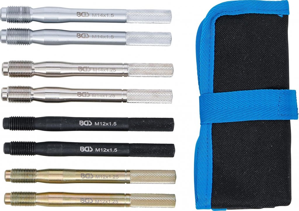 Detta set innehåller 4 vanliga gängstorlekar (M12 x 1,25 / 1,5 och M14 x 1,25 / 1,5) och passar därmed de flesta fordon på marknaden. Varje bult har räfflat grepp för smidig isättning och säkert fäste även med oljiga händer.