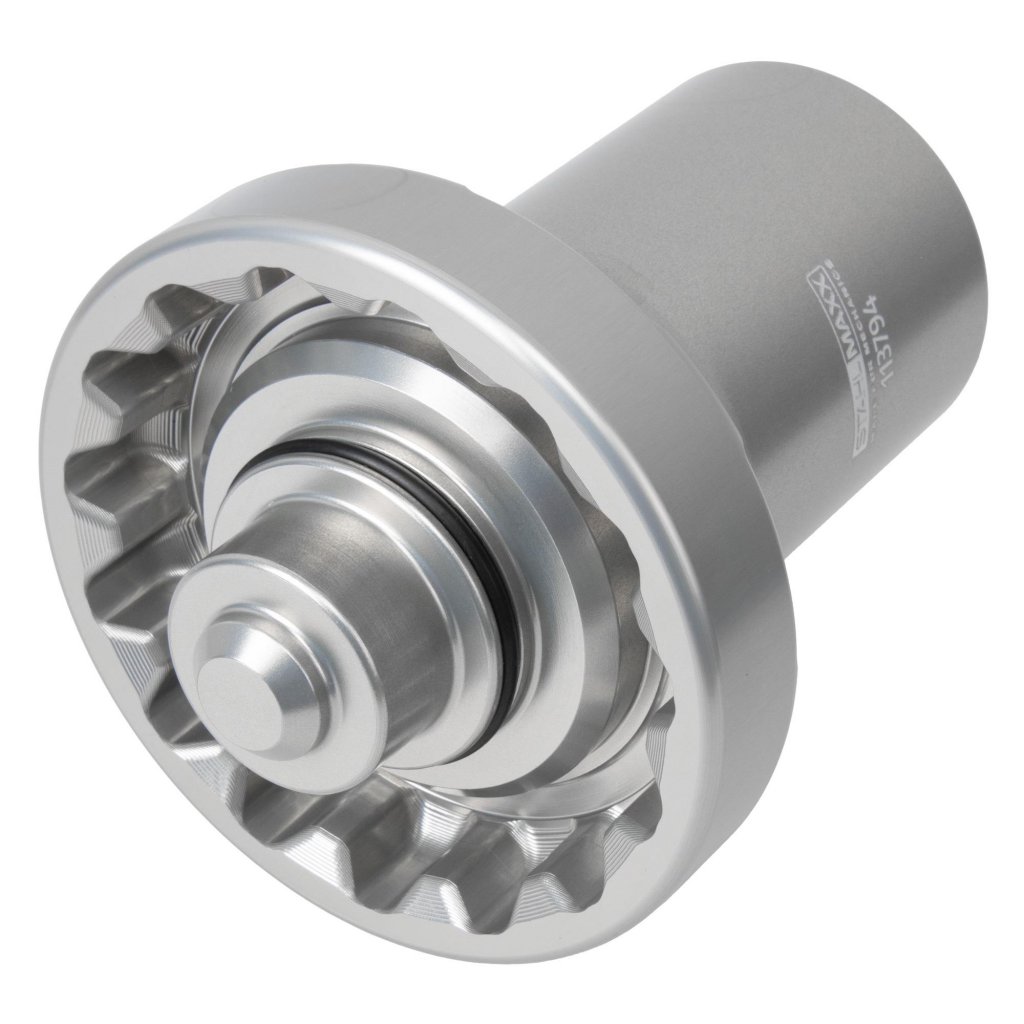 Till skillnad från många andra modeller som är gjutna är denna hylsa CNC-fräst, vilket ger mycket hög måttnoggrannhet i varje kant. Den exakta passformen säkerställer ett stabilt grepp om centrallåsmuttern och minimerar risken för skador på de kostsamma originalkomponenterna.