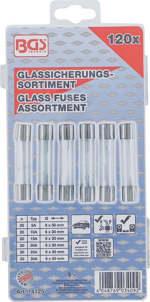 Detta glasrörssäkring-sortiment med 120 delar är ett mångsidigt och praktiskt set för alla som arbetar med elektronik, fordon eller marina installationer. Satsen innehåller sex olika amperetal från 5 A till 30 A och levereras i en robust plastlåda som gör det enkelt att organisera, identifiera och transportera säkringarna.