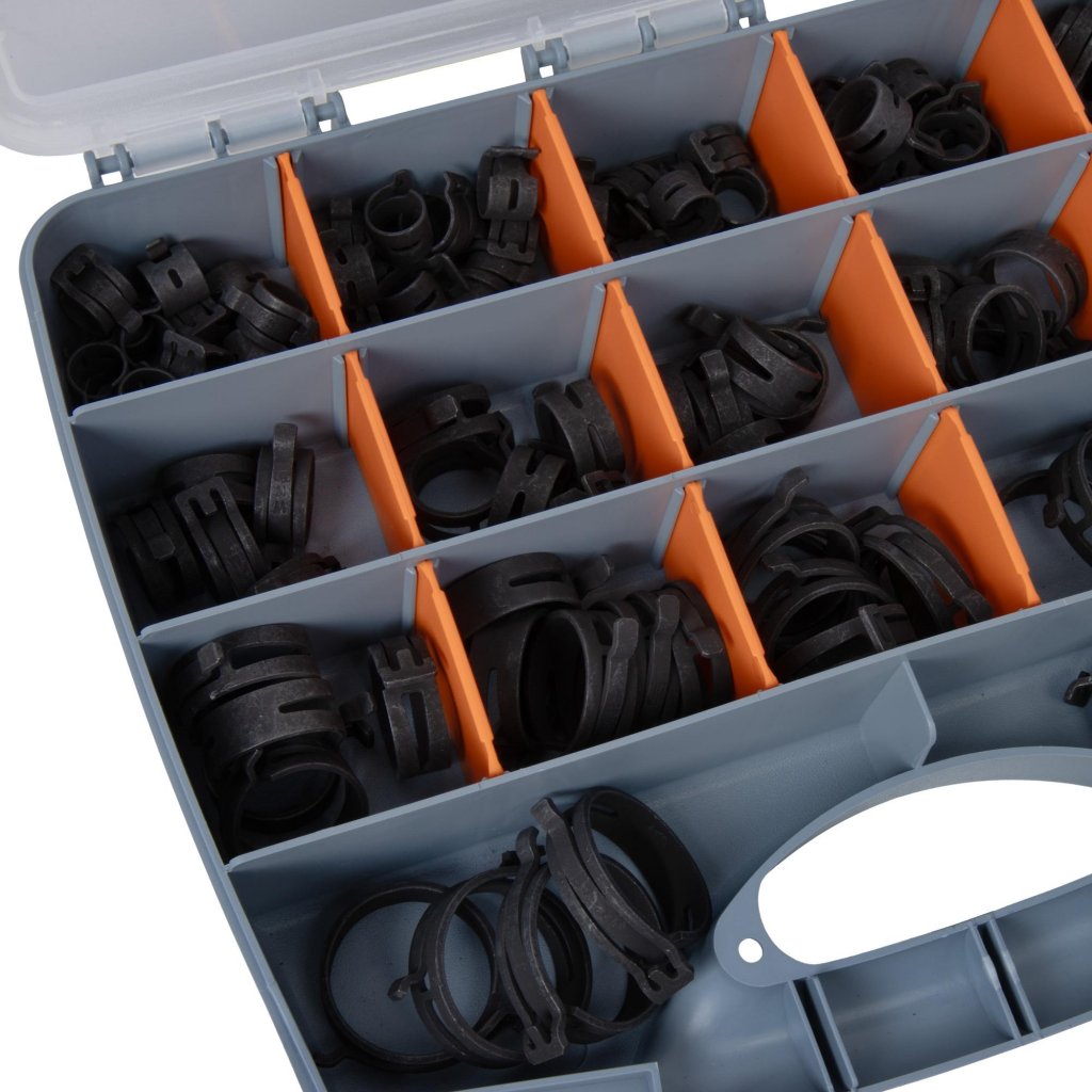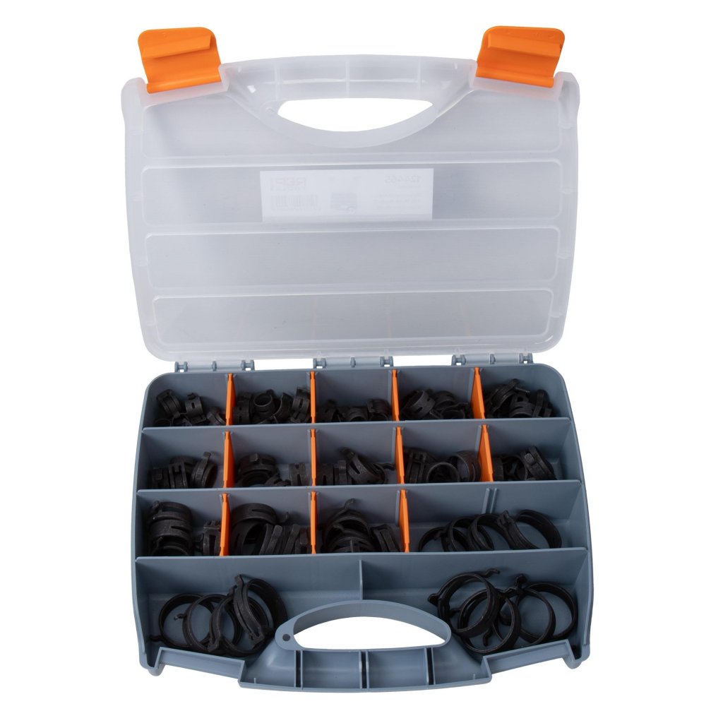 - Komplett sortiment med 112 klämmor i flera storlekar
