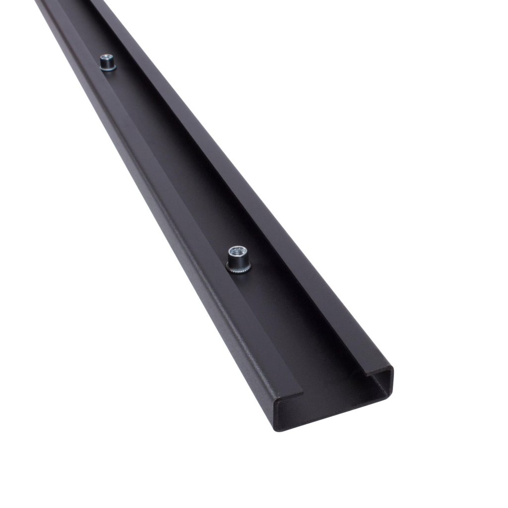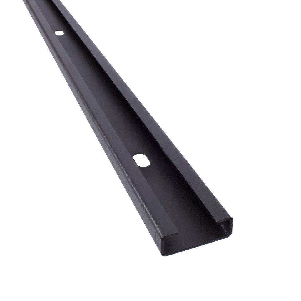 Ändskena för stabilisering av enskilda moduler / skåpsystemet. Används endast som avslutningsskena för en kombination av underskåp, väggskåp och perforerad vägg. Ej lämplig för sammankoppling av underskåp och högskåp. (Anslutningsskena, bred med dubbel perforering art.nr 118749).