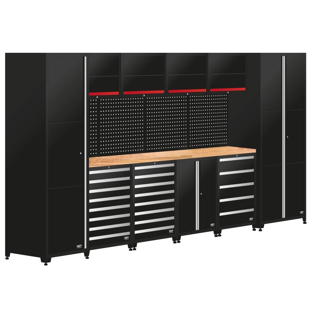 Skapa en komplett och professionell arbetsmiljö med denna verkstadsinredning i 6 moduler, 4359 mm bred. Systemet är utvecklat för större verkstäder och industriella miljöer där maximal förvaring, stabil arbetsyta och lång livslängd är avgörande.