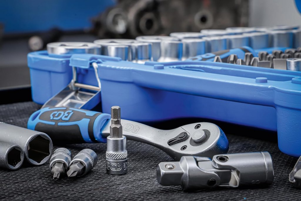 Med fintandade, omställbara spärrhandtag, T-handtag, kardanknut och förlängningar får du precision och stabil kraftöverföring även i trånga utrymmen. Alla hylsor och bits är tillverkade i krom-vanadiumstål för maximal hållbarhet.