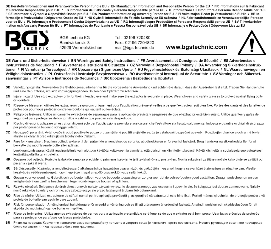 Pinnbult avdragare för pinnbultar/gängade bultar från 6,3 mm – 14 mm och 1/4″ till 1/2″