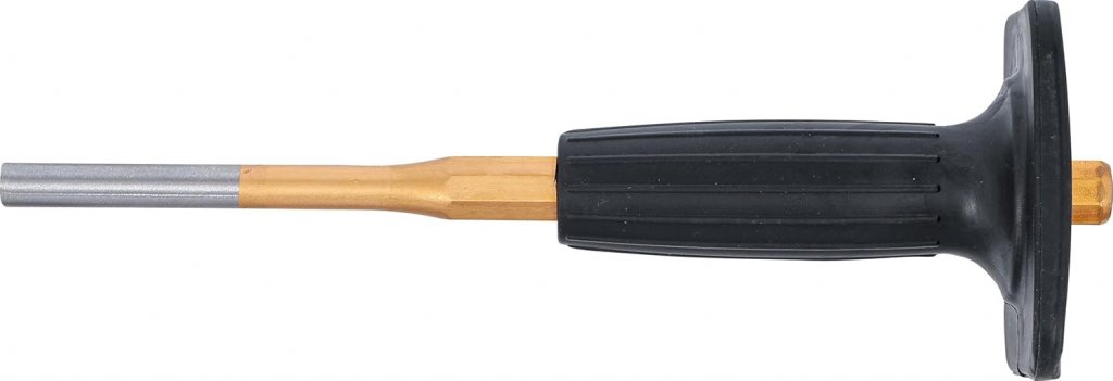 Denna dorn med handskydd är ett robust och säkert verktyg för exakt positionering, urdrivning och justering av komponenter i verkstadsmiljö. Tillverkad av härdat och lackerat krom-vanadiumstål, erbjuder den hög slitstyrka och lång livslängd även vid intensiv användning.