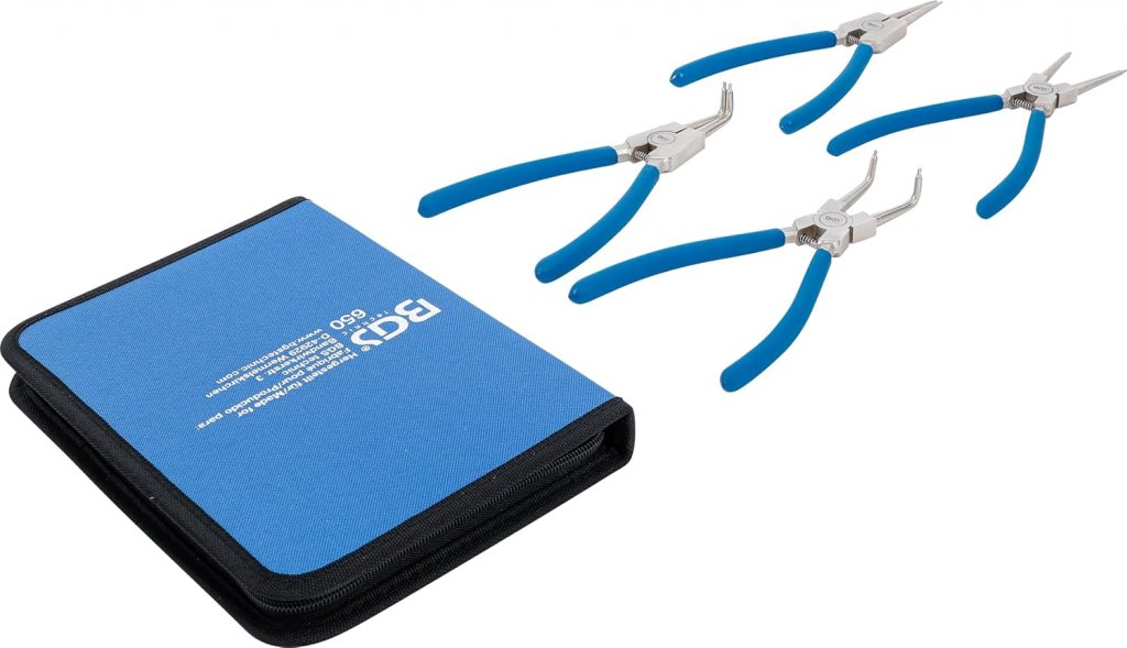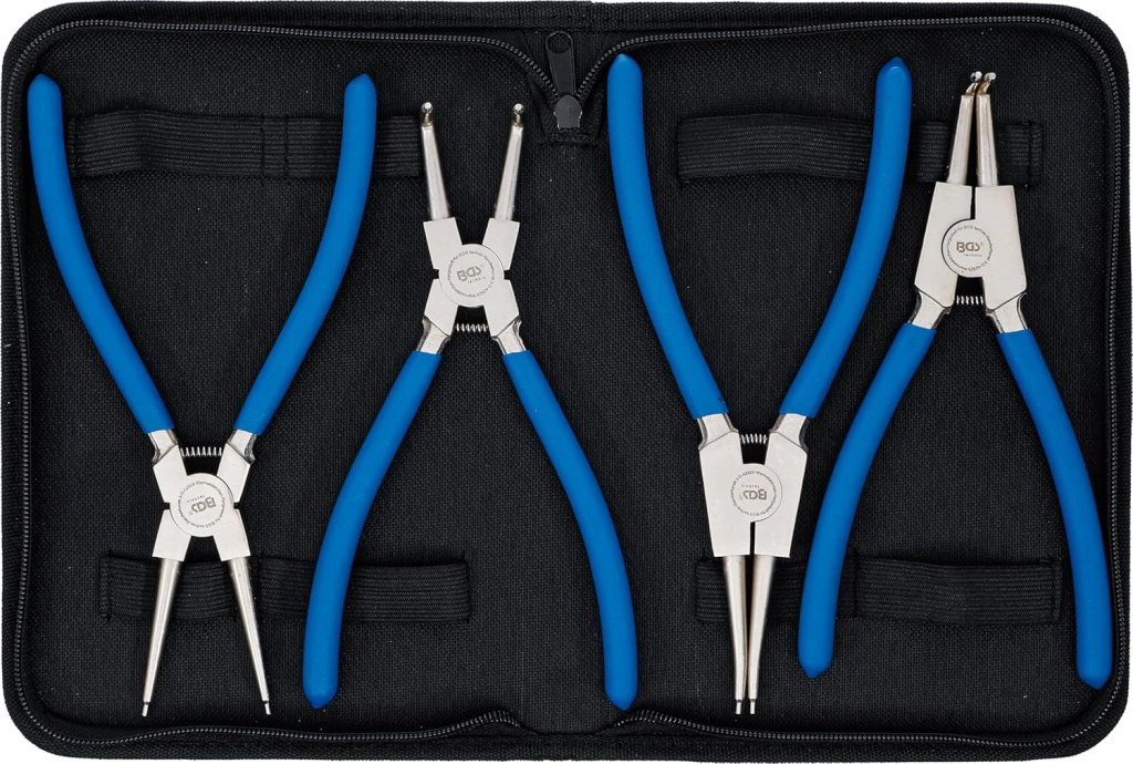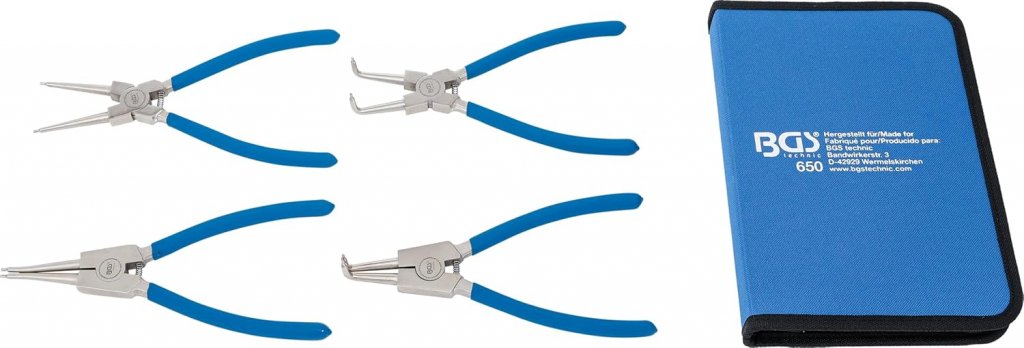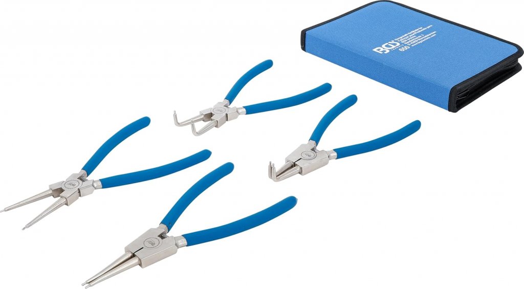 Låsringstång-sats med raka och böjda spetsar och lämplig för inre och yttre låsringar.