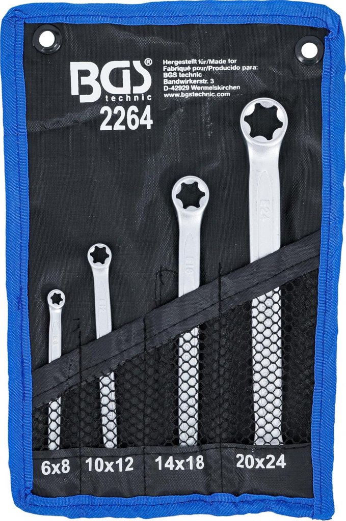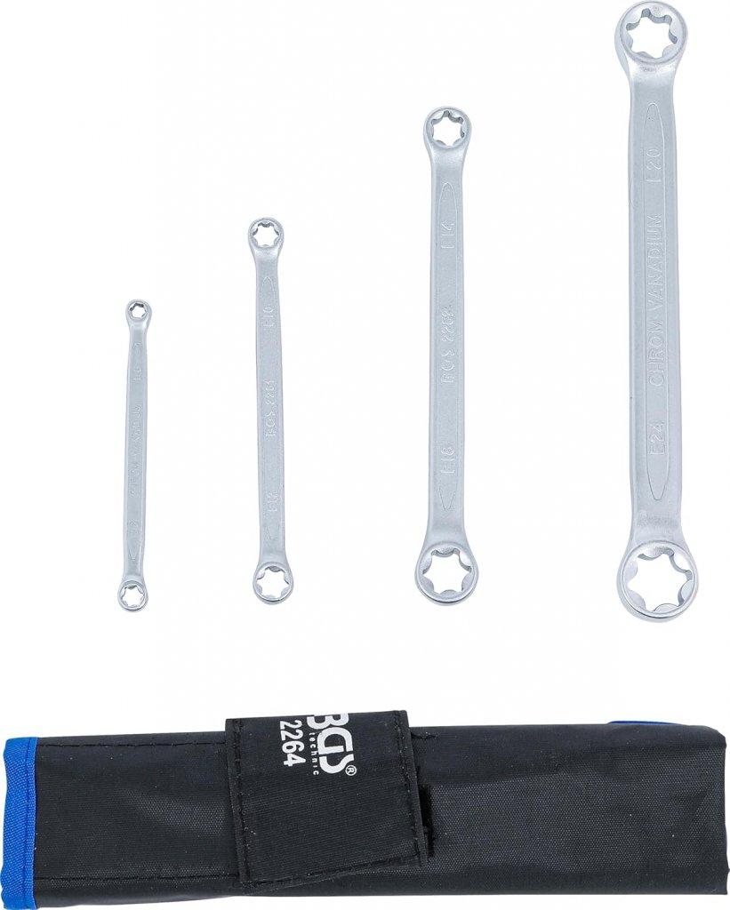 Denna Ringnyckelsats med E-profil, 4 delar, är ett oumbärligt verktyg för fordons- och mekanikerarbete. Tillverkad i varmsmidd Krom-Vanadium stål med matt förkromad yta för lång hållbarhet och korrosionsskydd.