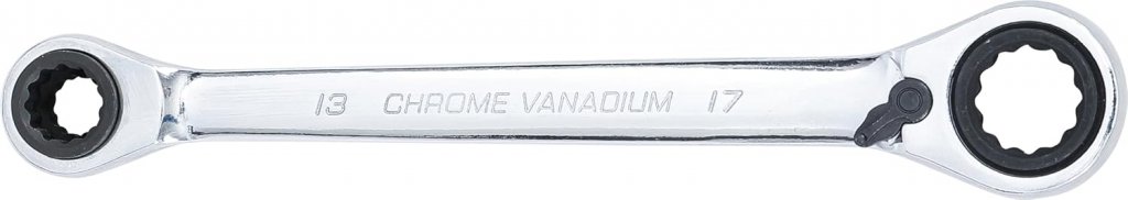 Ringspärrnyckel 4-i-1, 10x12 & 14x17 mm, kombinerar fyra nyckelstorlekar i ett kompakt och mångsidigt verktyg. Perfekt för arbete där utrymmet är begränsat, men precision och effektivitet krävs.