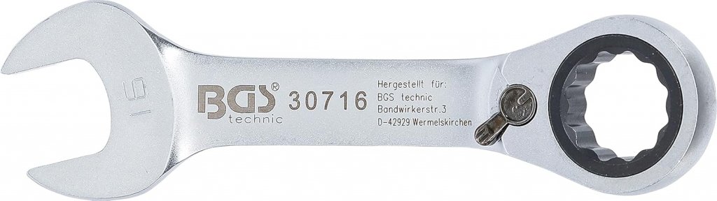 Kompakt och effektiv ringspärrnyckel i kort utförande, utvecklad för arbete i trånga utrymmen där standardlängd inte räcker till. Den omställbara spärrfunktionen gör det enkelt att växla mellan höger- och vänstergång utan att lyfta verktyget, vilket sparar tid och ger ett smidigare arbetsflöde.