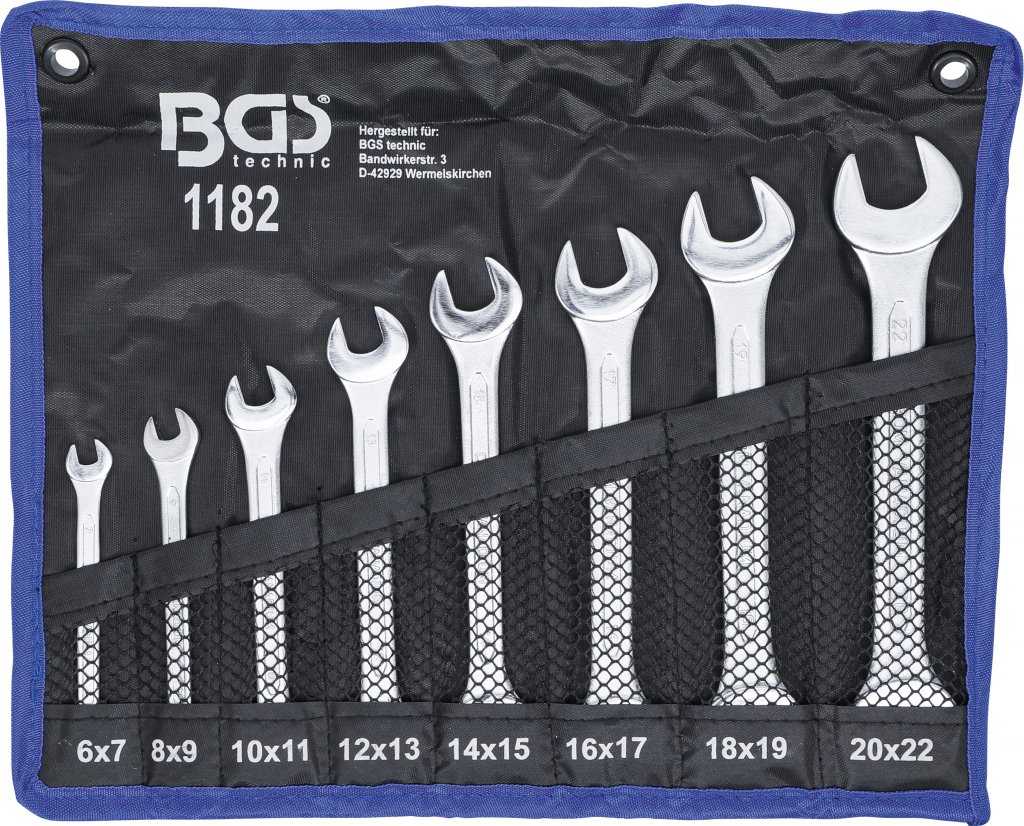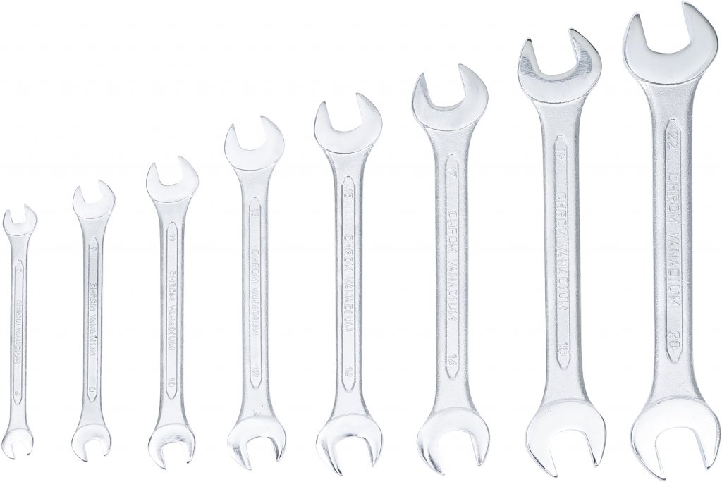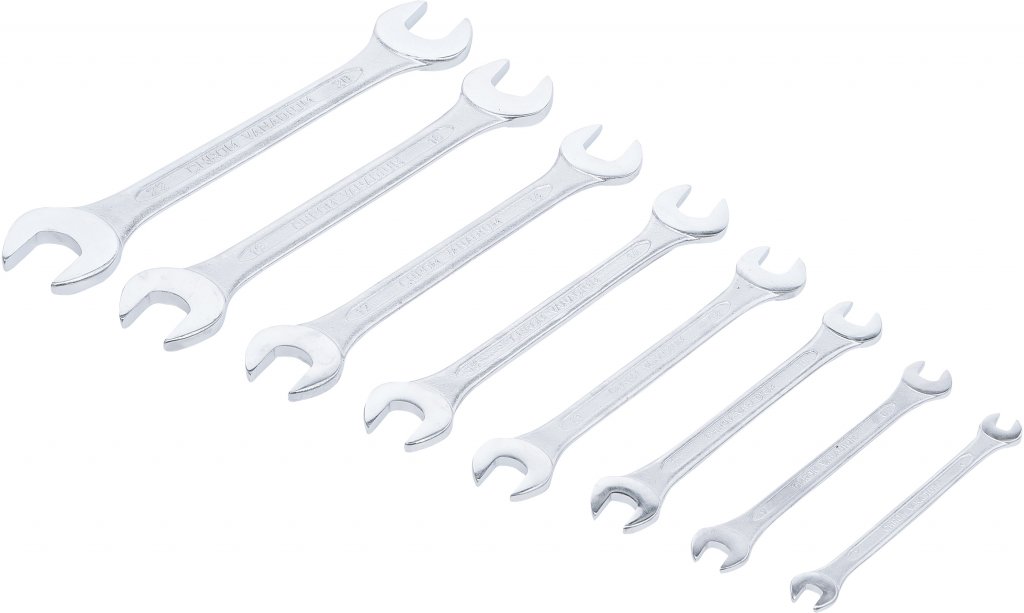U-nyckelsats, 6 - 22 mm, 8 delar är varm smidd och förkromad med polerade käkar.