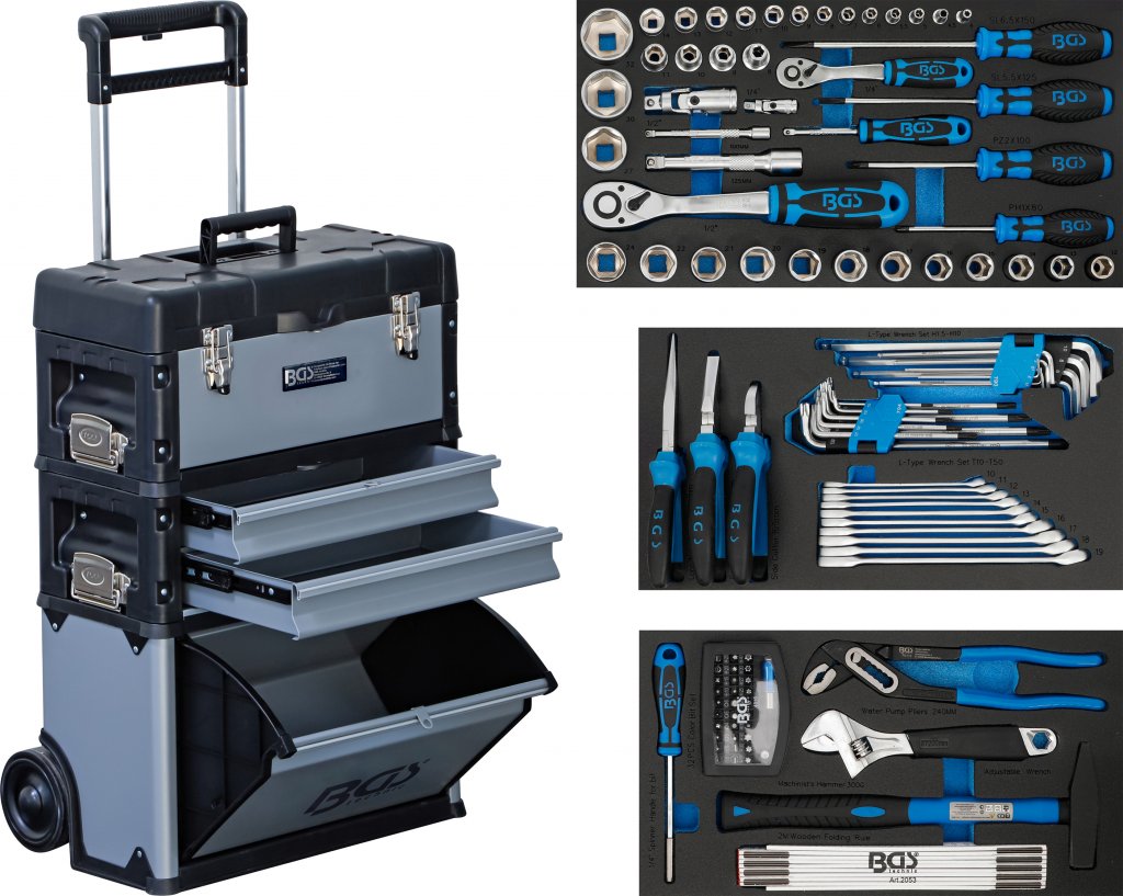 Stabil verktygsvagn med hårt skal av slagtålig plast och stålplåt