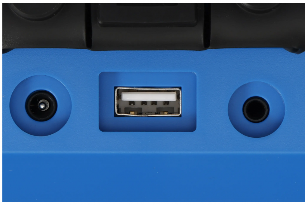 Radion är utrustad med USB-port för laddning av externa enheter samt hörlursuttag för privat lyssning. Den hopfällbara antennen och det robusta handtaget gör den smidig att transportera och använda överallt.