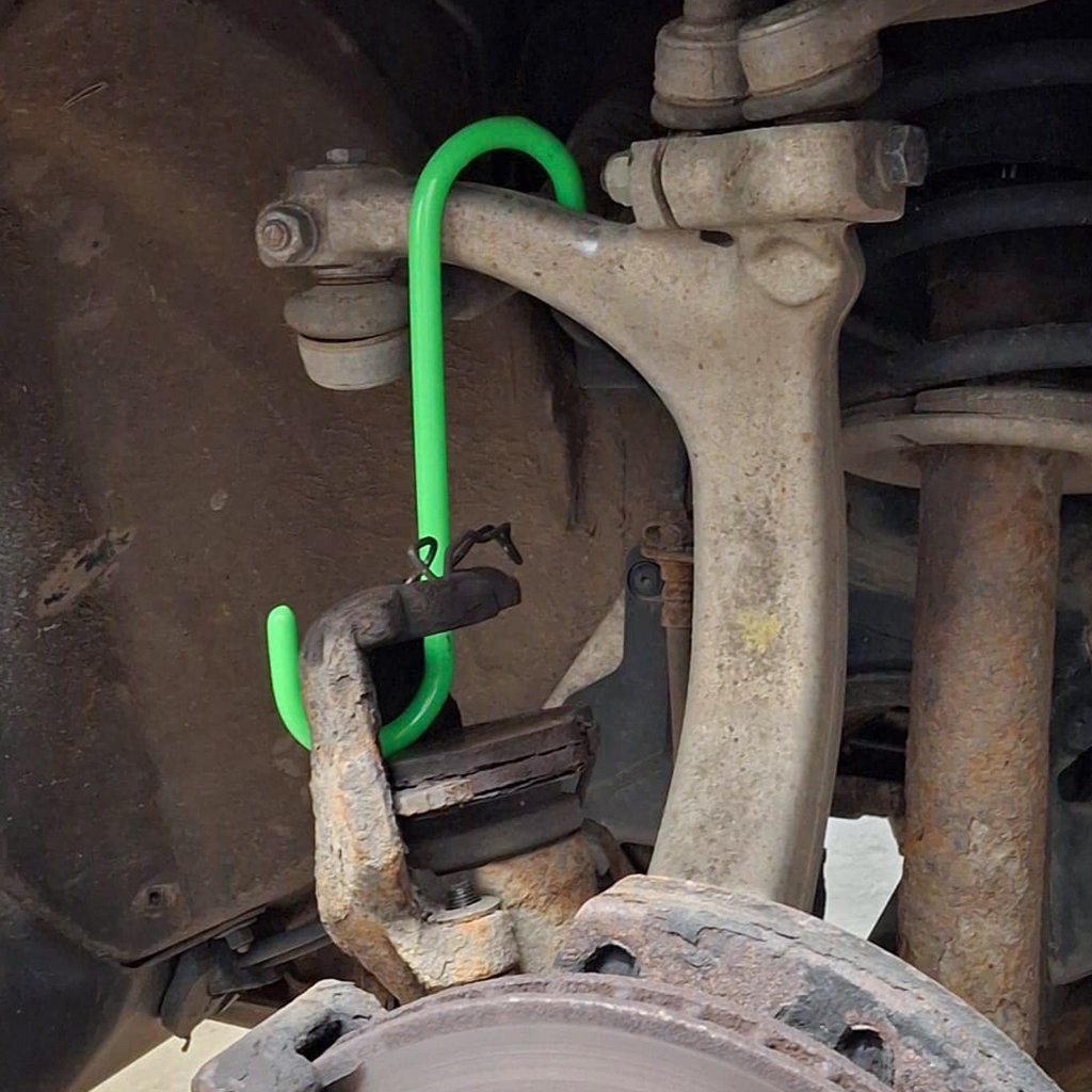 Dessa styva bromsokskrokar är användbara för service av bromssystem och många andra fordonsreparationer. De kan användas för att säkert och utan skador hänga upp inte bara bromsok, utan även chassikomponenter, kylare och till och med frontmasker. Den slående gröna färgen gör kroken lätt att identifiera.